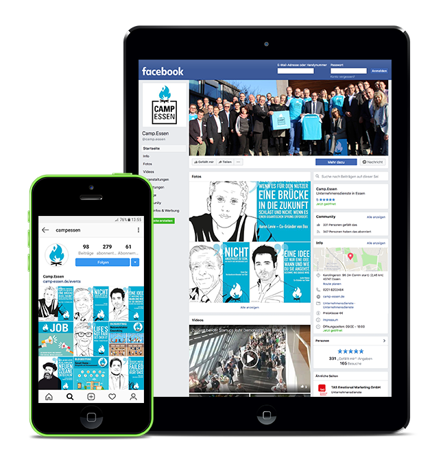 Gebrandete Social-Media-Postings werden über Facebook und Instagram veröffentlicht. Wir entwickeln Serien, erstellen Grafiken für die einzelnen Workshops und Termine und branden zusätzliche Postings.