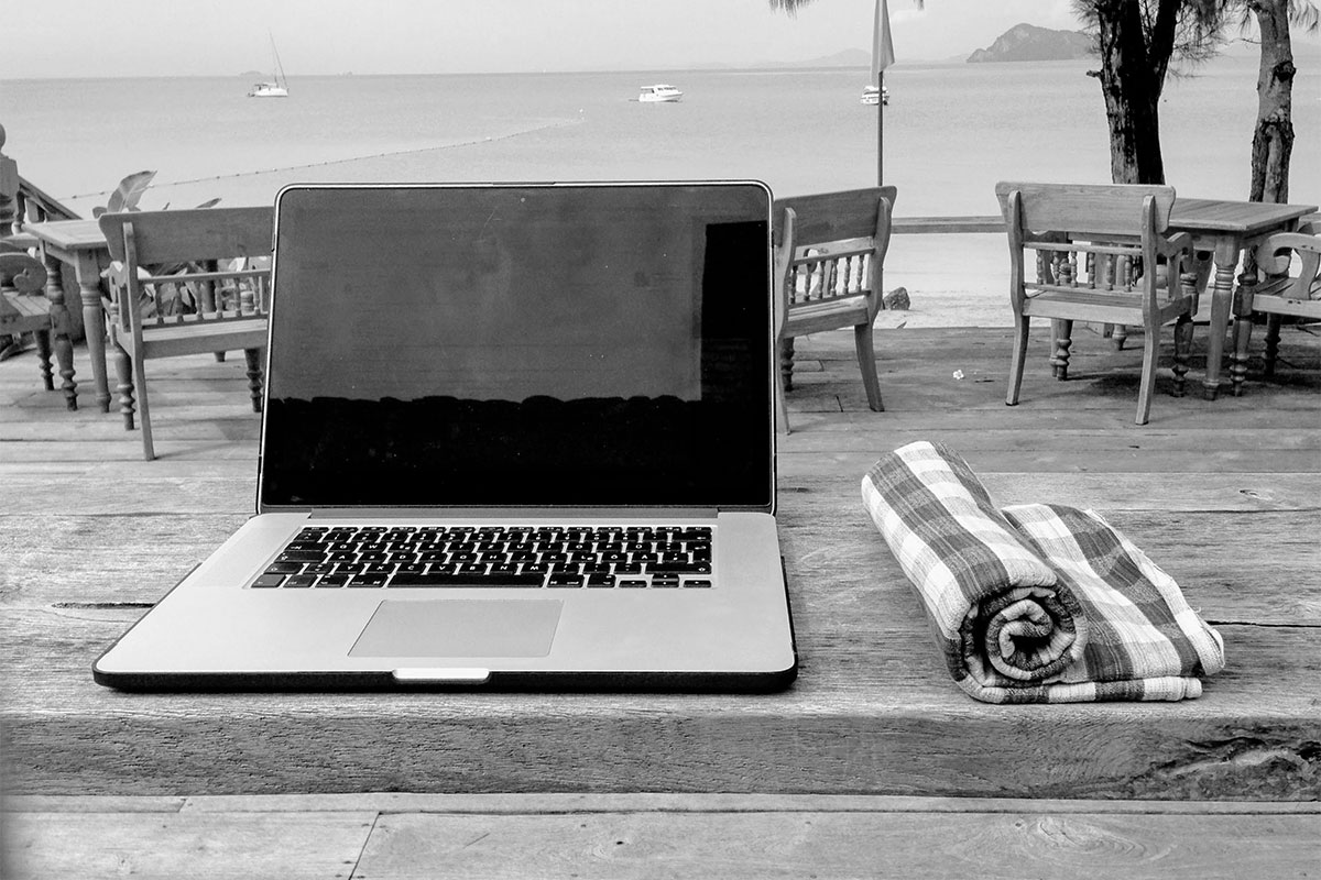 … das war die Idee, als wir uns 2014 selbstständig gemacht haben. Ganz im Sinne der Bewegung der digitalen Nomaden. Frank war zu dem Zeitpunkt als Basslehrer, Musiker und Fotograf in jeglicher Hinsicht „unterwegs“, Denise arbeitete noch als Grafikdesignerin in einer Essener Agentur für Kommunikationslösungen. Allerdings war sie alles andere als glücklich. „Ich wollte lieber mein eigenes Ding machen!“ Und wie!? „Am liebsten mit Rucksack und Laptop in Asien am Strand sitzen und arbeiten, während ich mir eine Kokosnuss schmecken lasse.“ Das war die Idee. Und gleichermaßen die Motivation. Ganz wie digitale Nomaden eben.